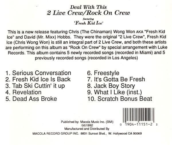2 Live Crew / Rock On Crew Featuring »Fresh Kid Ice» – Deal With This