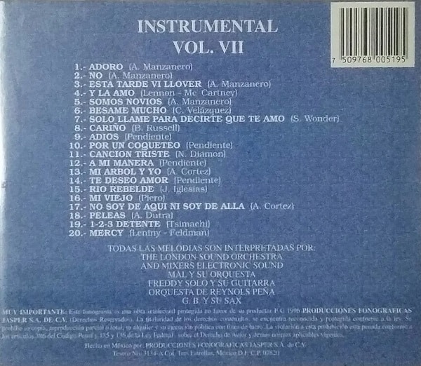 20 Kilates Musicales – Instrumental Vol VII ( The London Sound Orchestra And Mixers Electronic Sound – Mal Y Su Orquesta – Freddy Solo Y Su Guitarra – Orquesta De Reynols Peña – G.B. Y Su Sax )