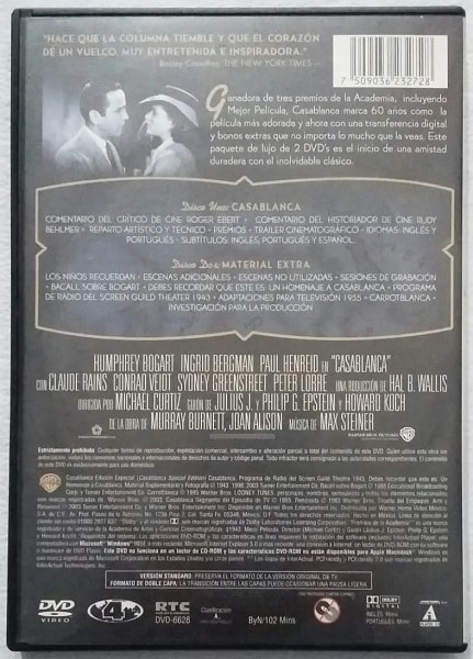 Casablanca ( Humphrey Bogart – Ingrid Bergman – Paul Henreid ) Edicion Especial ( 2 Dvds )