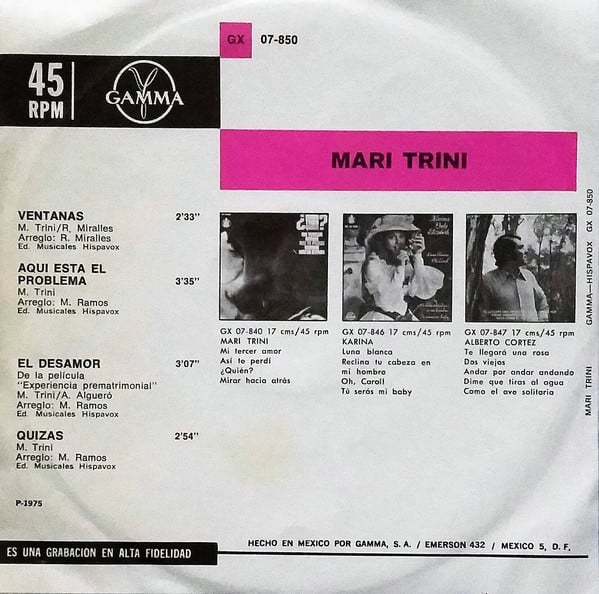 Sello: Gamma (4), Hispavox – GX 07-850