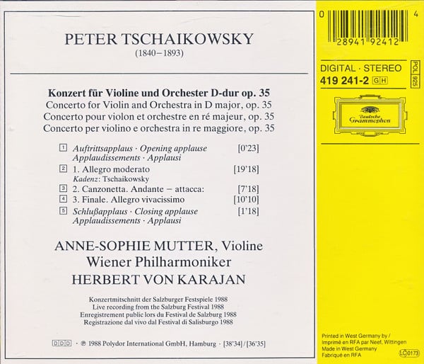 Tschaikowsky – Anne-Sophie Mutter, Wiener Philharmoniker • Herbert von Karajan – Violinkonzert = Violin Concerto = Concerto Pour Violon
